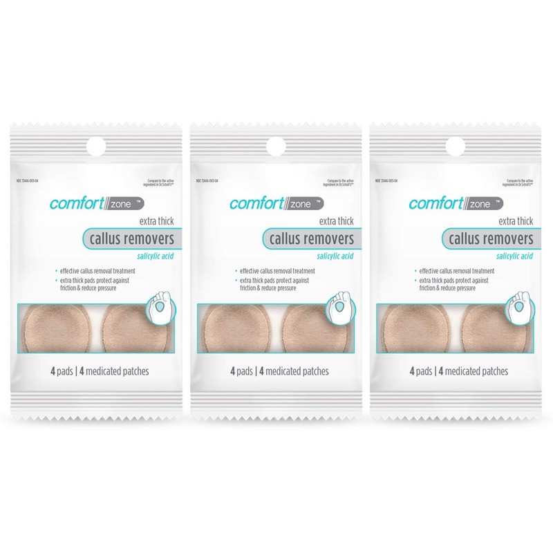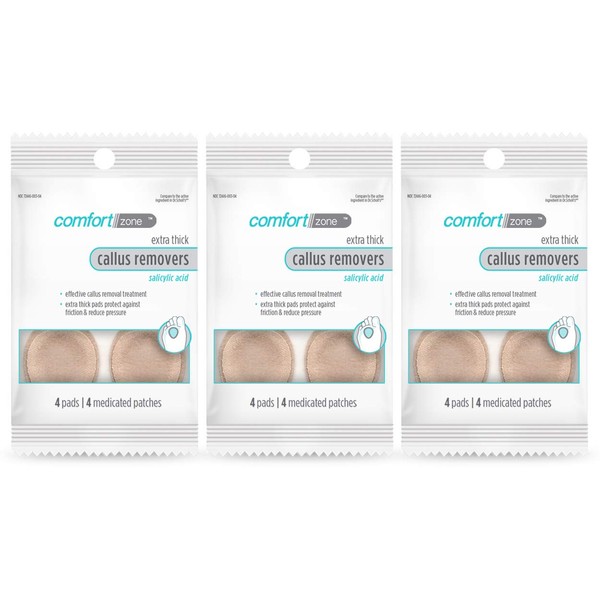 Comfort Zone Extra Thick Callus Remover Pads for Feet, Contains 40% Salicylic Acid, Protective Callus Pads for Feet to Cushion & Protect Against Friction, 4 Count, Pack of 3