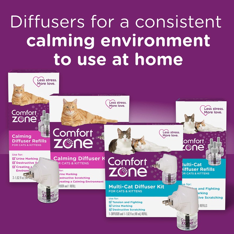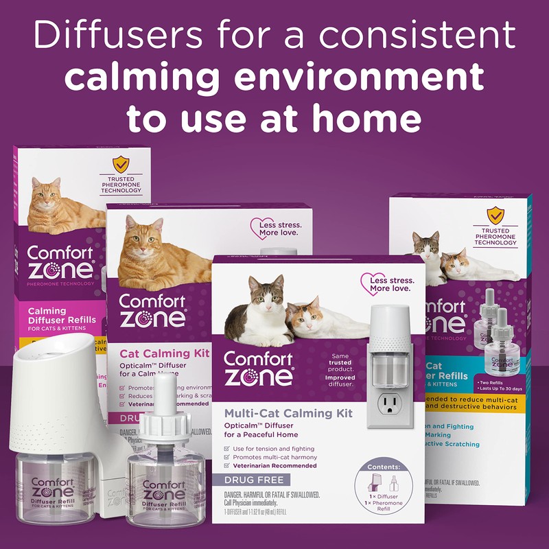 - 😺 TRUSTED CALMING: Our trusted cat calming pheromone formula refills work in all Comfort Zone diffusers and last up to 30 days.