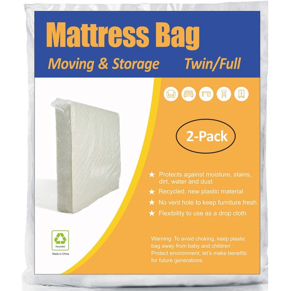 ComfortHome Mattress Bag for Moving and Storage, Twin and Full Size, 2 Pack Clear