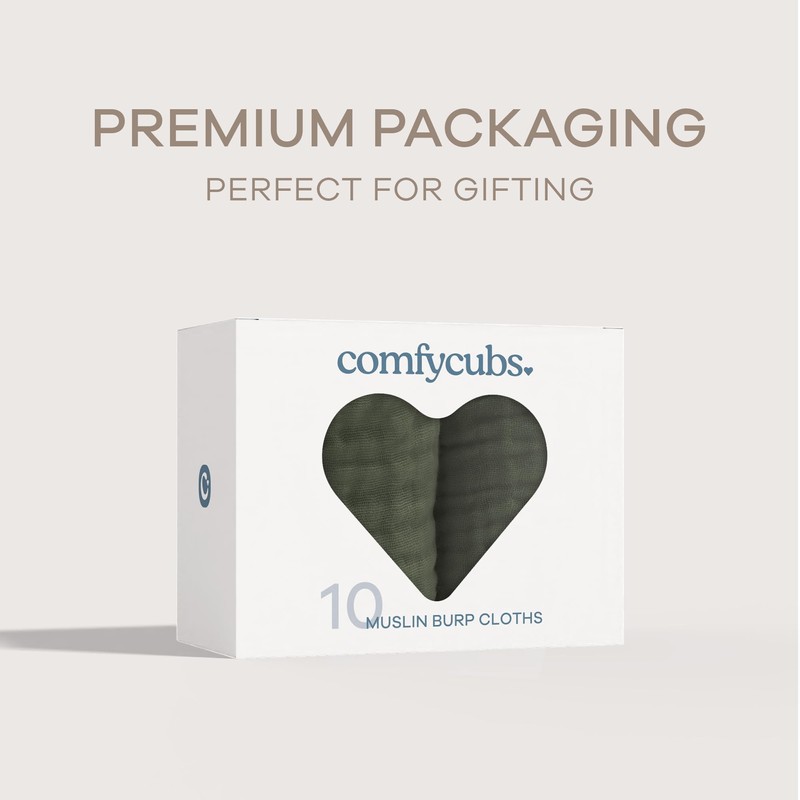 Comfy Cubs Comfy Cubs Muslin Burp Cloths 20" x 10", Pack of 10 - Large, 6-Layer, Ultra Absorbent 100% Cotton for Baby Drool and Messes - Soft, Safe & Gentle Baby Burp Cloths for Boys & Girls - Kelp