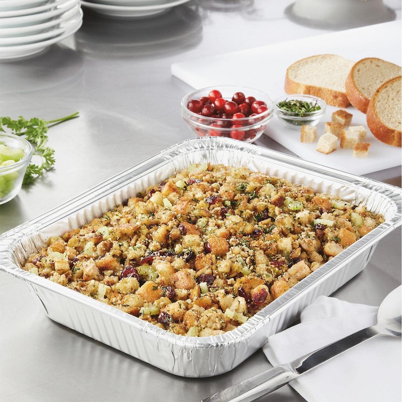 - Half Size Deep Foil Pans - Depth = 2 9/16 Inches, Top Length = 12 3/4 Inches, Top Width = 10 3/8 Inches, Capacity = 120 oz.