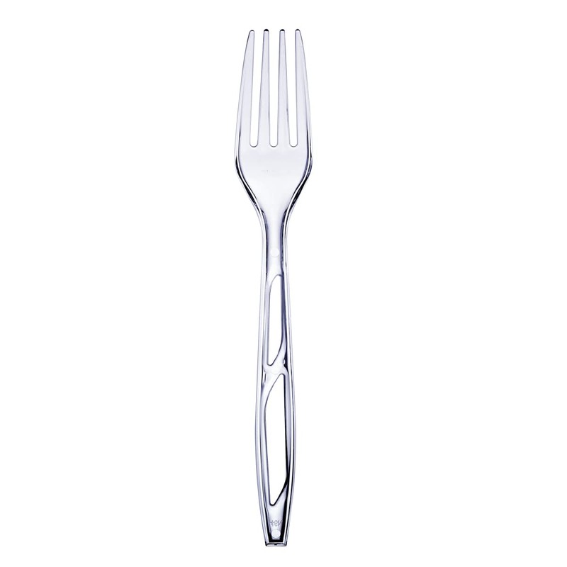 - Elegant & fashionable- upgrade your event, dinner or casual meal with these fashionable clear forks These clear plastic forks blend in with the decor yet are an eye-popping accessory