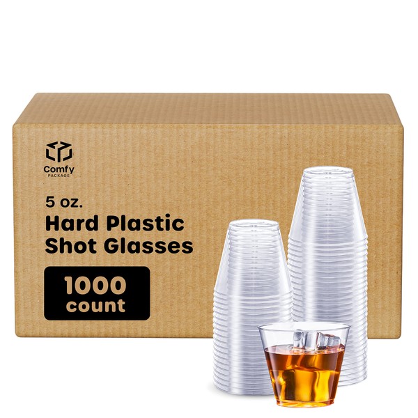 Comfy Package [Case of 1,000 5 oz. Hard Plastic Tumblers, Clear Plastic Cups - Plastic Cups for Party, Cocktails, and Events