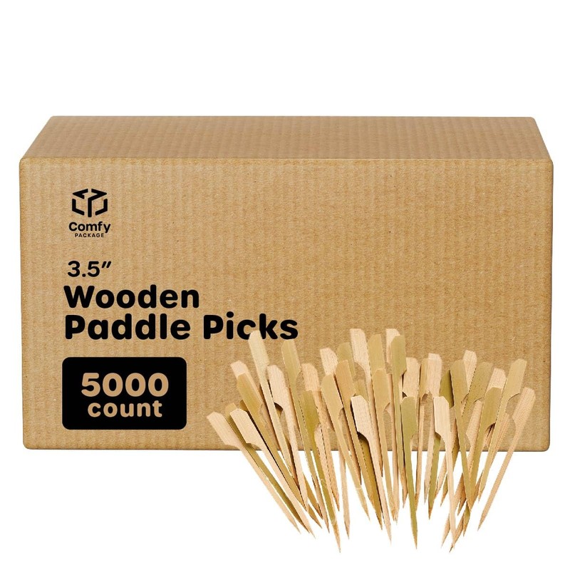 Comfy Package [Case of 5000] 3.5 inch Wooden Paddle Picks, Bamboo Skewers - Toothpicks For Cocktails, Grilling, Appetizers, Fruits, Barbeque and Sandwiches