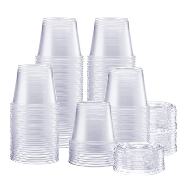 Comfy Package Comfy Package [5.5 oz. - 200 Count Clear Disposable Plastic Portion Cups with Lids - Souffl Cups, Jello Shot Cups With Lids, Clear Plastic Containers Perfect for salad Dressing and More