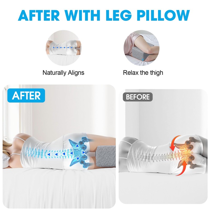 - Premium Memory Foam for Comfort and Support: Conforms to the unique shape of your legs and knees, providing customized support and cushioning. The memory foam responds to your body weight, offering optimal comfort and pressure relief. It also helps to stabilize your sleeping posture. The overall dimensions of the main product contribute to this supportive effect