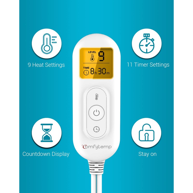 - 9 Heat Choices & Memory Function: Our Comfytemp heating pad features 9 heat levels, allowing you to customize your proper temperature. Plus, memory function helps you remember your favorite heat and timer setting