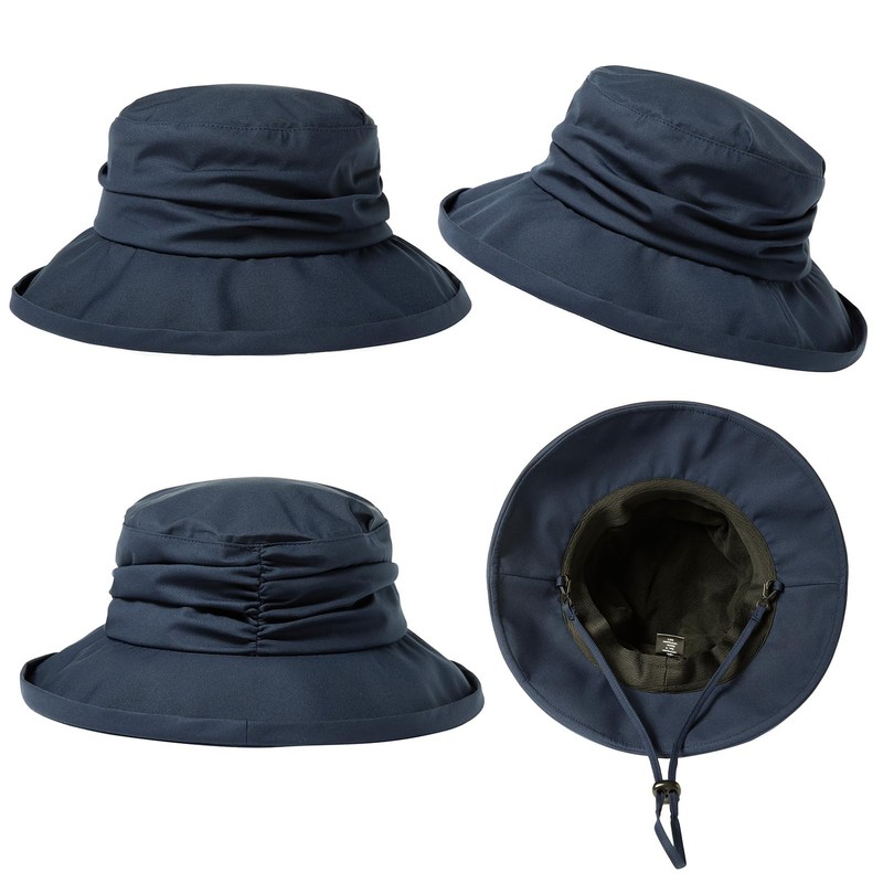 Comhats Foldable Women's Rain Hat Sun Hat Waterproof Hat with Chin Strap UPF50+, 737_Navy Blue (Fleece Lining)