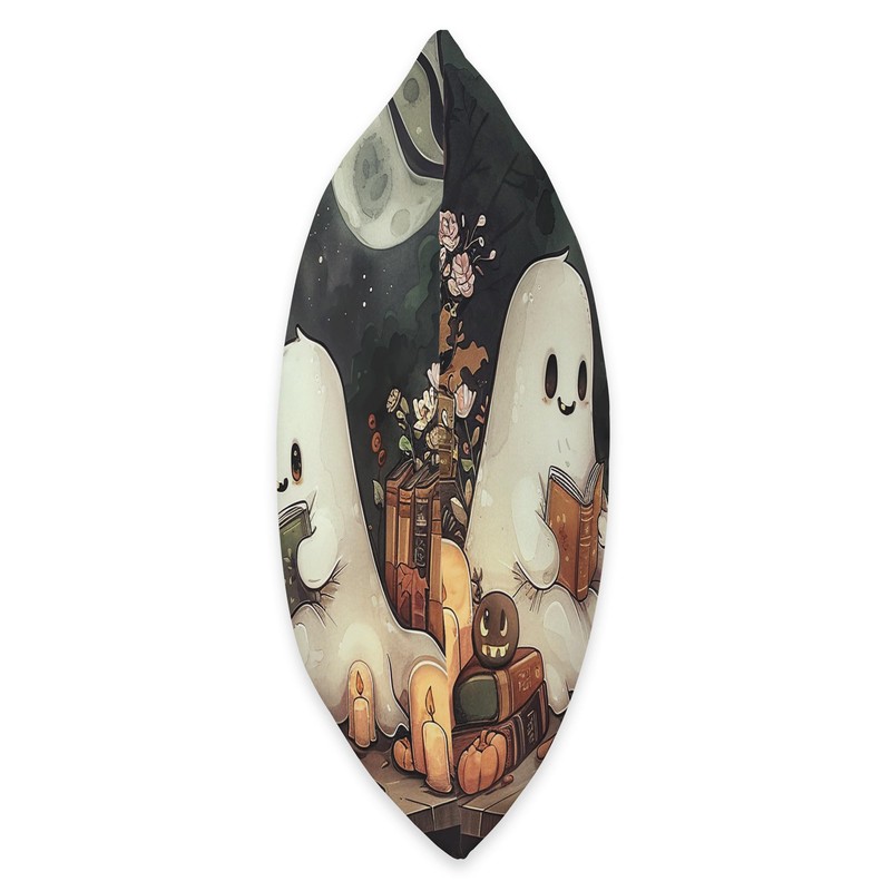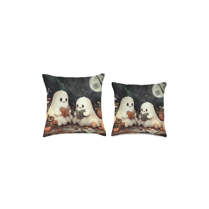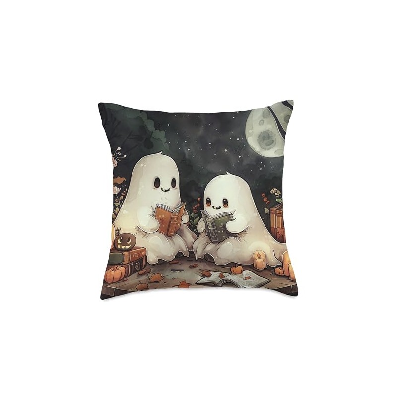 Comic Ghosts Reading Books Moon Pumpkins Graphic Throw Pillow
