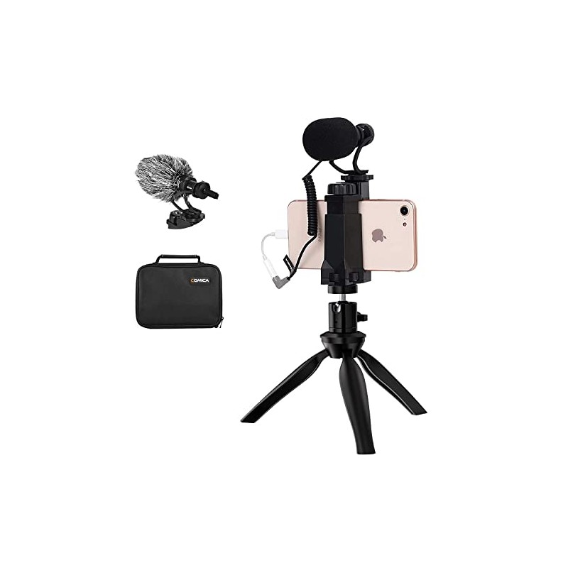 - Set Contents: 1 x CVM-VM10II microphone, 1 x smartphone clip, 1 x tabletop tripod, 1 x audio cable, 1 x microphone windshield muff 1 x instruction manual (English language not guaranteed), 1 x storage bag. We have done our best to make you satisfied. )