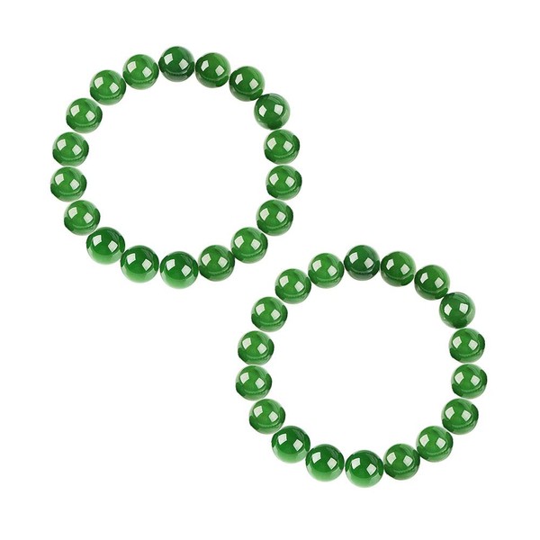2Pcs 10 mm Dark Green Jade Round Gemstone Beads Stretchy Bangle Bracelet 7.5(If the number of products received is incorrect, please contact us. we will refund or give you a replacement.)