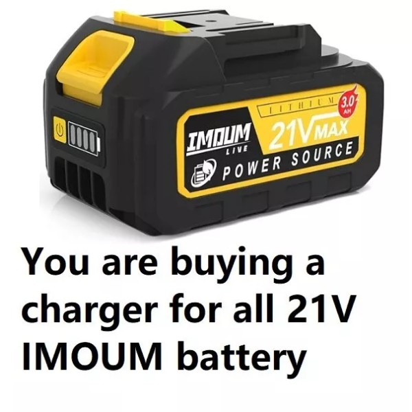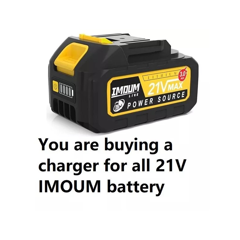 🔥ac adapter battery Charger for all IMOUM imoumlive 21v battery chainsaw 2v4bytIf you have other model and not sure about the charger type please send me a picture of your charging port and the voltage of the battery. I will look it up for you. Thank you for looking.Â