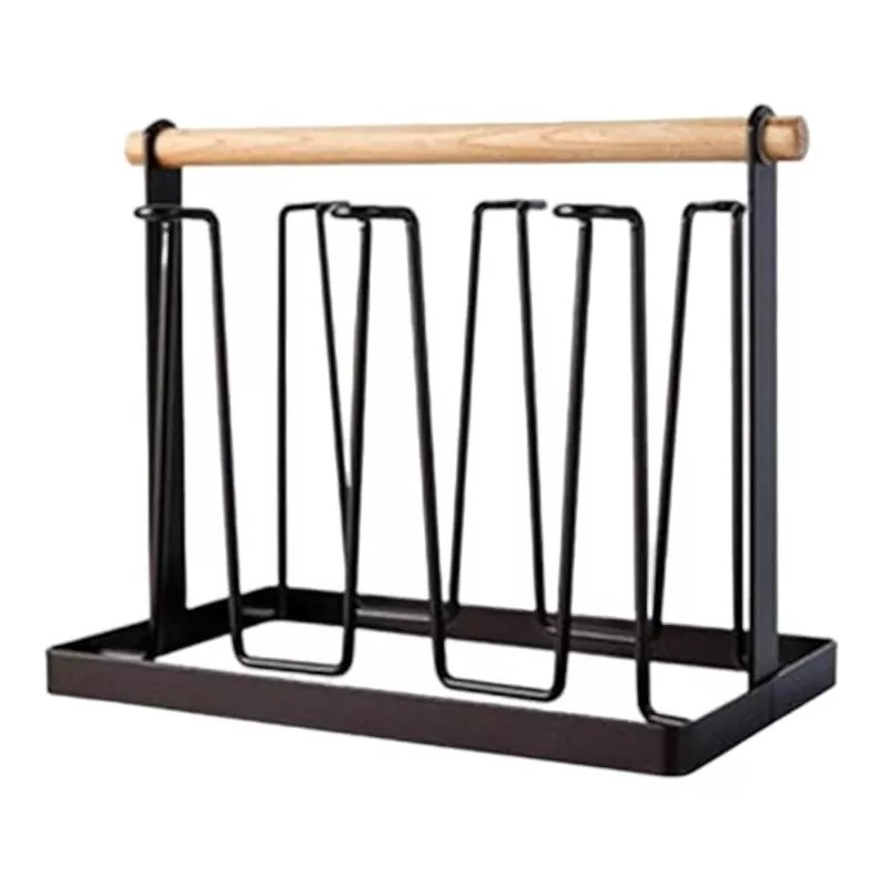 ComLeo Portavasos De Acero Con Asa De Madera Base Metálica