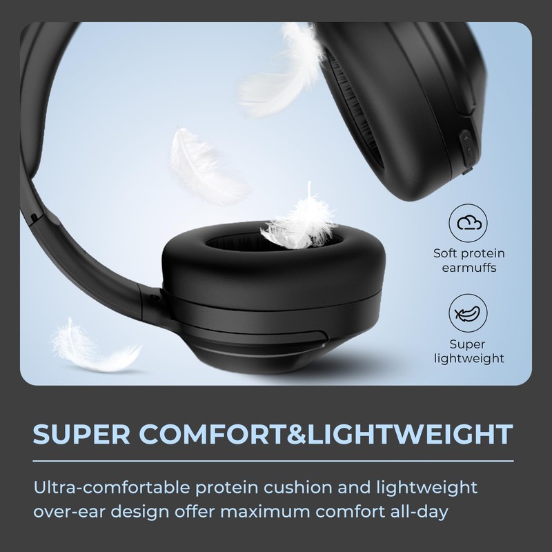 • ALL-DAY COMFORT – Lightweight, comfortable and adjustable, these over-ear headphones are designed to fit perfectly into your life. Super soft memory foam ear cushions ensure outstanding comfort, adjustable headband and angled-swivel earcups to find your personal perfect fit, making them ideal for all-day comfort.