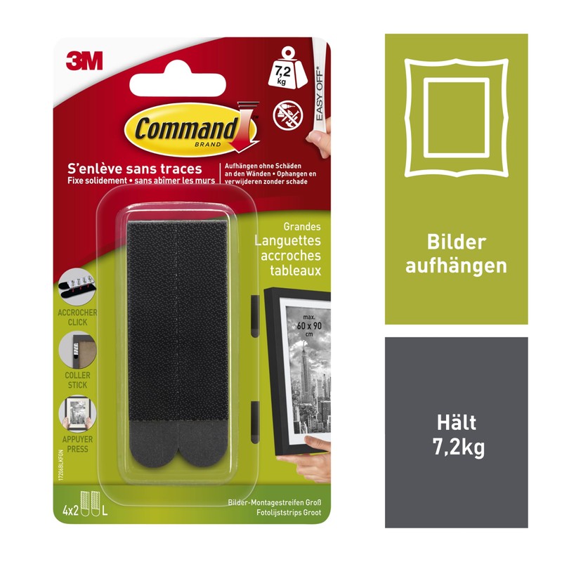 Command 17202BLK Picture Mounting Strips (Size S – Maximum Load up to 1.8 kg) 4 Sets with 2 Strips Large black