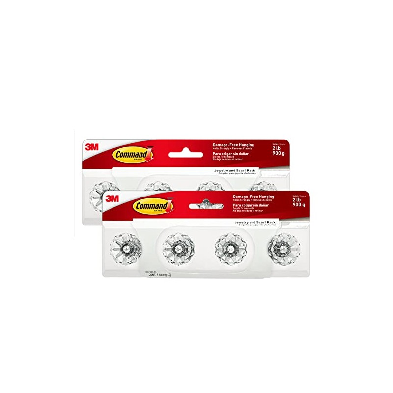 Command Crystal Knob Jewelry and Scarf Rack, Total 2 Scarf Organizers with 8 Command Strips, 2 Pack of 1 Rack, Organize Damage-Free