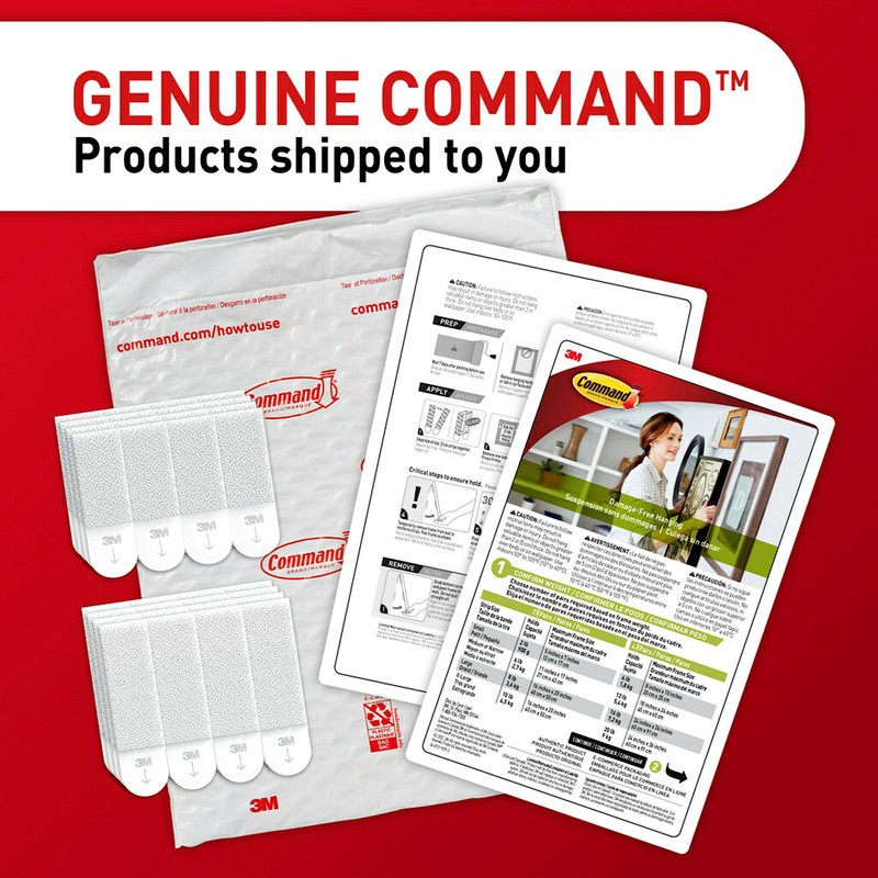 Command White Medium and Large Picture Hanging Strips let you decorate how you want, when you want, during the holidays without leaving holes, marks or sticky residue on surfaces. Hang your favorite holiday decor, Christmas pictures and seasonal artwork with these picture hangers to create a winter wonderland in your living or working space. Mount these picture strips on painted walls, finished wood and tiles and enjoy the damage free hanging of your favorite holiday decorations. Perfect for home renovators and students, use Command Picture Hanging Strips in your home, office or dorm to elevate the appearance of your space this Christmas without tools. Directions are included that show how to use the 3M Wall Hanging Strips correctly. A clever decorating solution that doesn’t damage surfaces, these wall hanger strips will help you fearlessly change your space this holiday season. One package contains eight pairs of medium and large white picture hanging strips. Four pairs of medium strips hold up to 12 pounds with a max frame of 18 x 24 inches. Four pairs of large strips hold up to 16 pounds with a max frame size of 24 x 36 inches. Decorate, organize and celebrate damage-free with Command.