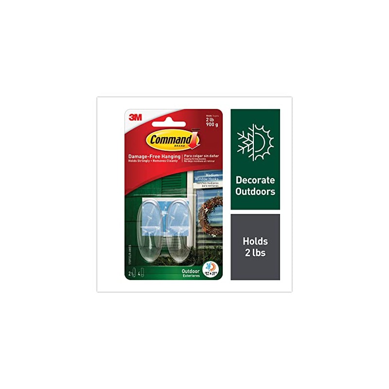 Command Strips 17091CLR-AW Medium Clear Outdoor Window Hooks 2 Count