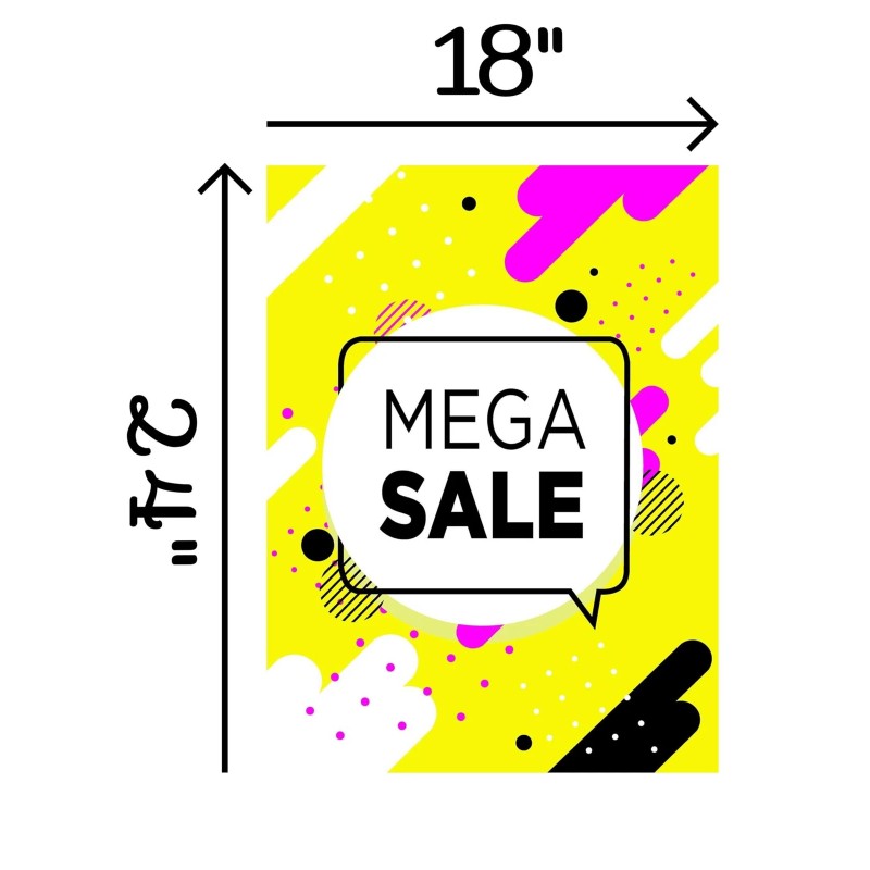 Mega Sale | Retail Window Display Sign | 18"W x 24"H Highly Visible Window Signs