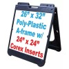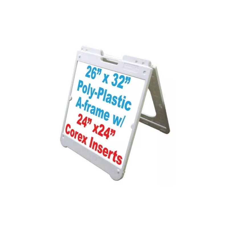 Our Poly A-Frame 26"x32" Double Sided Sidewalk Sign w/Coroplast Panels A-Frame signs are the perfect addition to any retail store, designed to make a curbside impression and attract customers with ease. Made in the USA, these signs are built to last and increase your walk-in sales by as much as 300%.