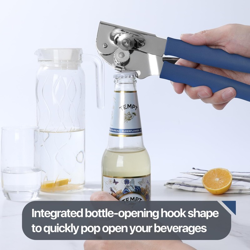 - Multifunctional Can Opener - Integrated bottle-opening hook shape on side of opener help you quickly pop open your beverage