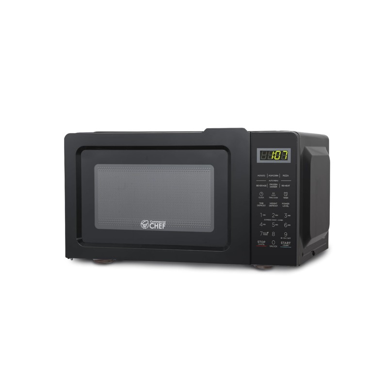 COMMERCIAL CHEF 0.7 Cubic Foot Microwave with 10 Power Levels, Small Microwave with Pull Handle, 700W Countertop Microwave up to 99 Minute Timer and Digital Display, Black