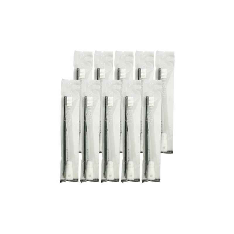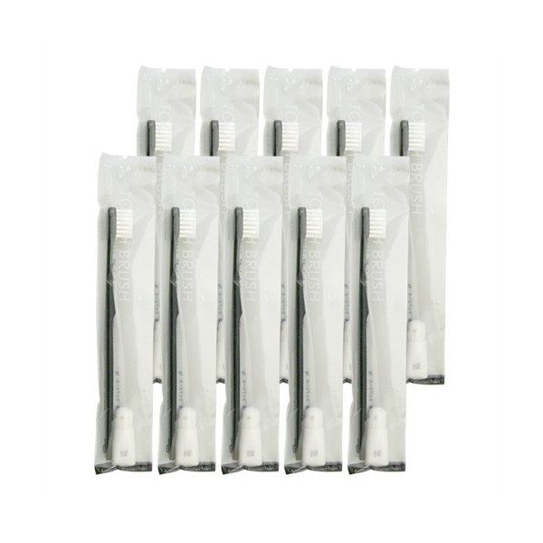 Commercial Disposable Toothbrushes with Tube Toothpaste (0.1 oz (3 g), Black, Set of 10