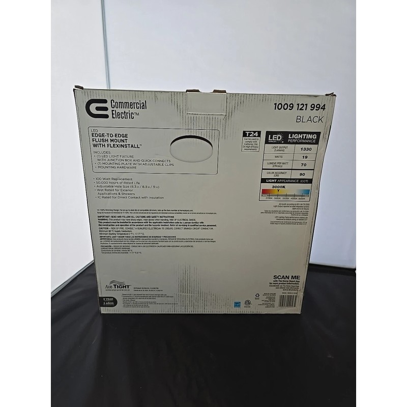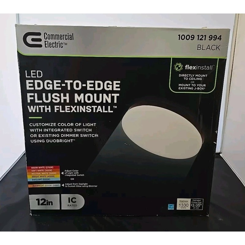 Commercial Electric Flexinstall LED 12 in. BLACK Edge to Edge Flush Mount Ceiling Light for Home