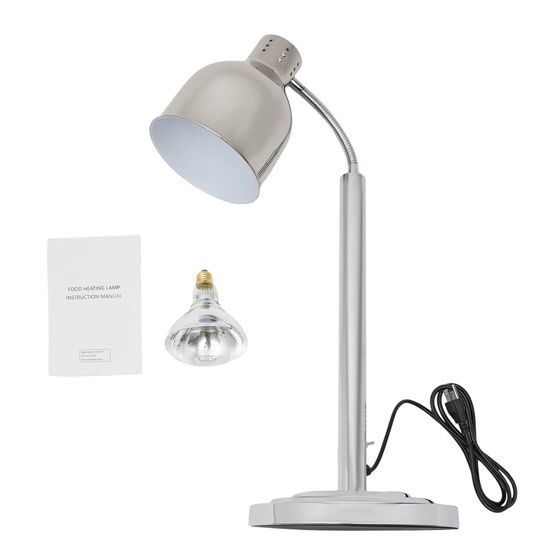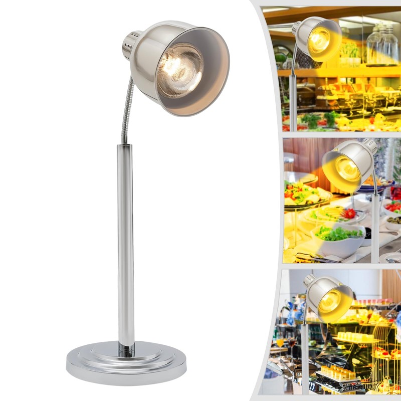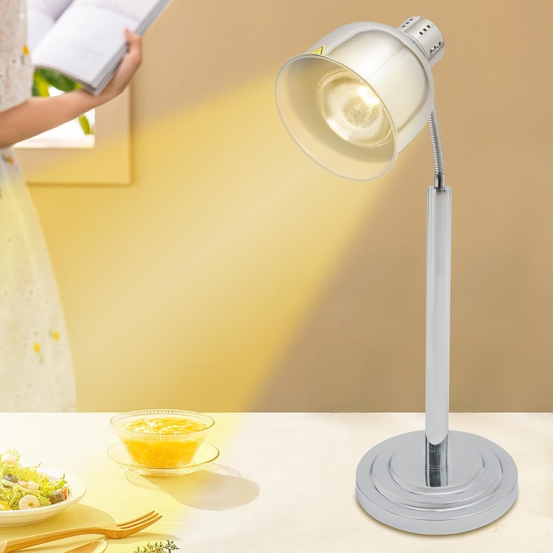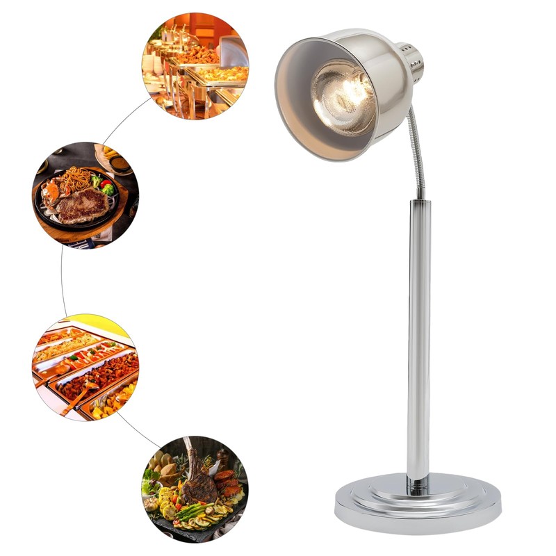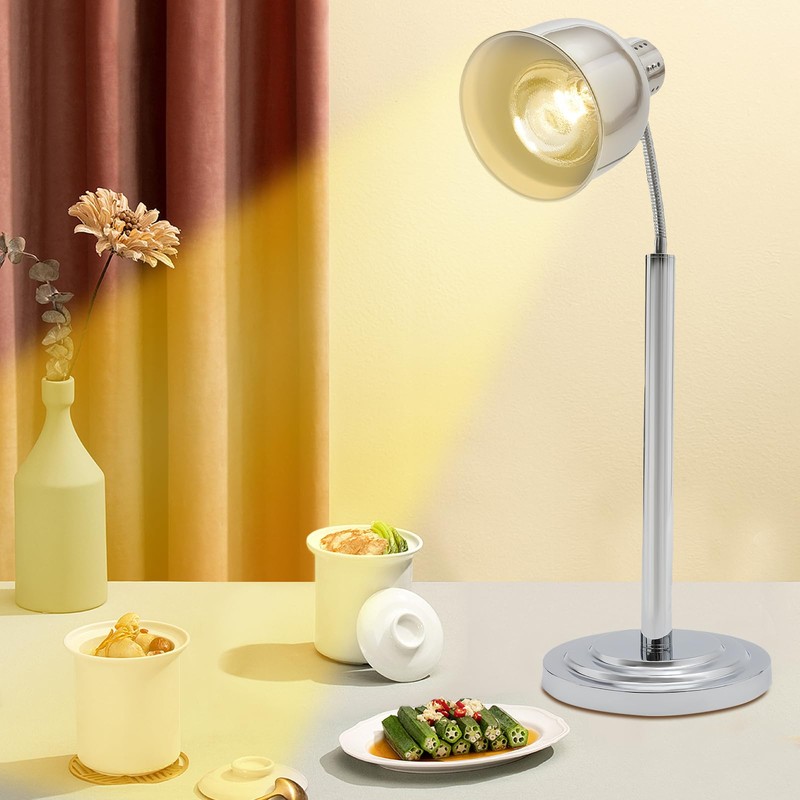 Commercial Food Heat Lamp with Round Base, 250W High-Power Infrared Heating Bulb for Food, Heating Lamp with Flexible Hose, Food Heating Lamp Food Warmers for Restaurants (Style-Silver)