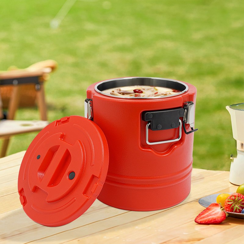 Commercial Insulated Bucket 15L Modern Insulated Container Soup Beverage Warmers Equipment with Lid for Kitchens Banquets Milk Tea Shops (Red)
