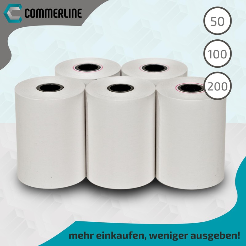 Commerline Thermal Rolls 57 mm x 45 mm x 12 mm, 25 Metres, 5 Rolls, Ec Rolls, Receipt Rolls, EC Device, Thermal Paper, Till Rolls