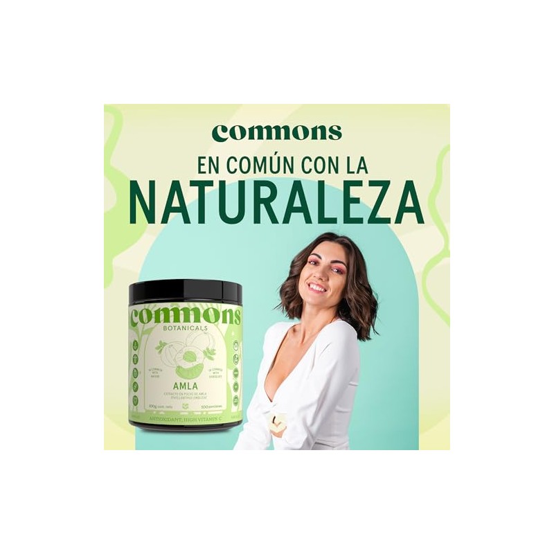Commons Adaptógenos - AMLA - Extracto Puro en Polvo 100 gr - Suplemento Natural - Tónico para la Piel y Cabello - Vitamina C - Antiinflamatorio y Antioxidante - Más de 5 Meses de Suministro -100% Orgánico - Vegano