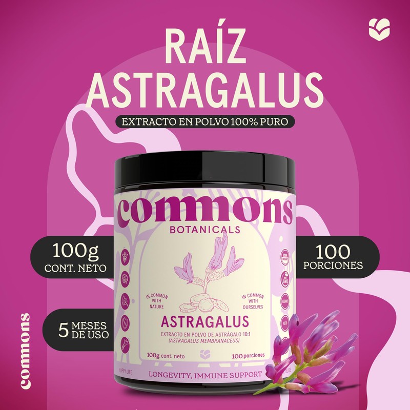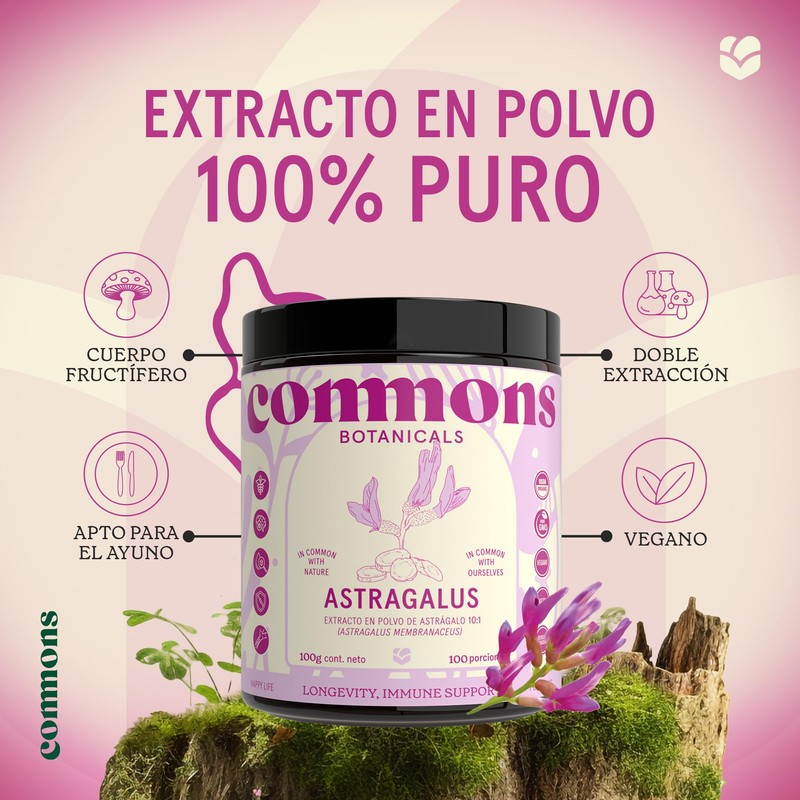Commons Hongos Adaptógenos - Astragalus - Extracto en Polvo 100 gr - Suplemento Alimenticio - Apoya el Sistema - 100% Orgánico
