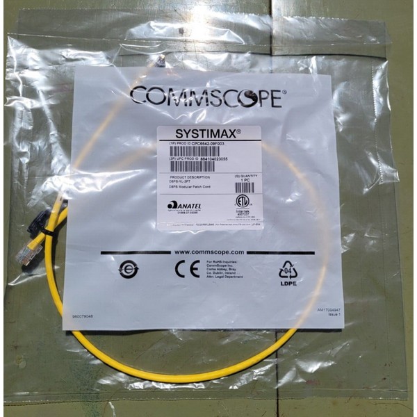 Commscope D8PS-YL-3FT / CPC6642-09F003 Modular Patch Cord 3ft Yellow NEW