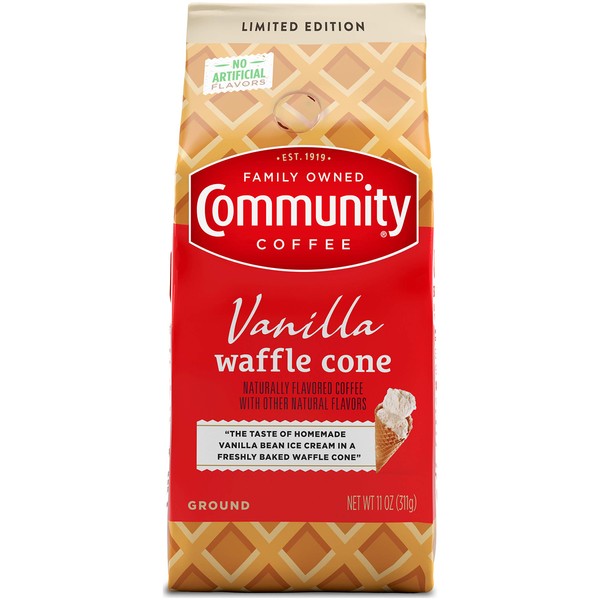 For your next cup of coffee, experience the taste of homemade vanilla bean ice cream in a freshly baked waffle cone with Community Coffee Vanilla Waffle Cone coffee. This product contains a 11 ounces of ground coffee. Perfect for using in an automatic drip coffee maker, for cold brewing or for pour-over coffee. About Community CoffeeSince Cap blended the first batch of Community® coffee, we’ve seen plenty of change — both inside and outside the company. We’ve evolved to better serve our customers, but we’ve also tried to stay true to our roots and the community that got us started. That’s why for over 100 years we’ve maintained an unwavering dedication to making the best-tasting, highest- quality coffee we possibly can — all while developing better methods of sourcing, superior roasting techniques and innovative ideas to keep our coffee at its peak of flavor and freshness.We simply love making coffee, and we find inspiration in every part of the process, from planting the beans to serving the perfect cup. Above all, we're inspired by the people we work with, the customers we serve and the connections we’ve built together.