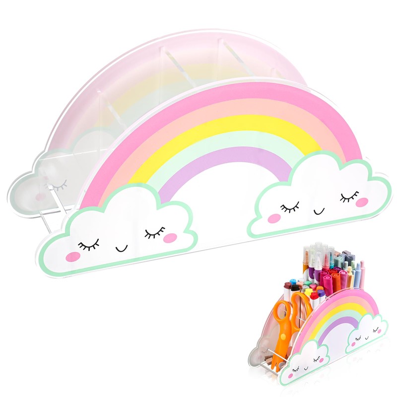 - 【Desk Organizer】This versatile kids desk organizer is not only functional but also a cute desk decor piece. The office organization rainbow design makes classroom supplies a favorite among girls desk accessories