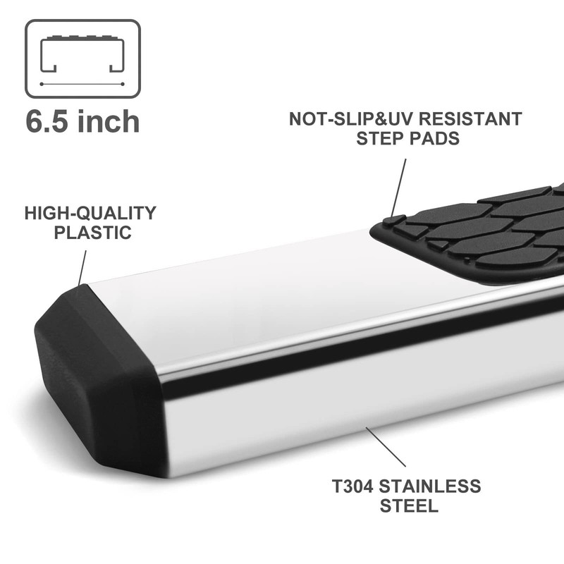 - CONVENIENCE: Honeycomb-shaped Anti-skid Running Boards, The 6.5 Inch Wide Steps Provide A Wider Area, Your Family Can Get In And Out Of The Truck Safely.