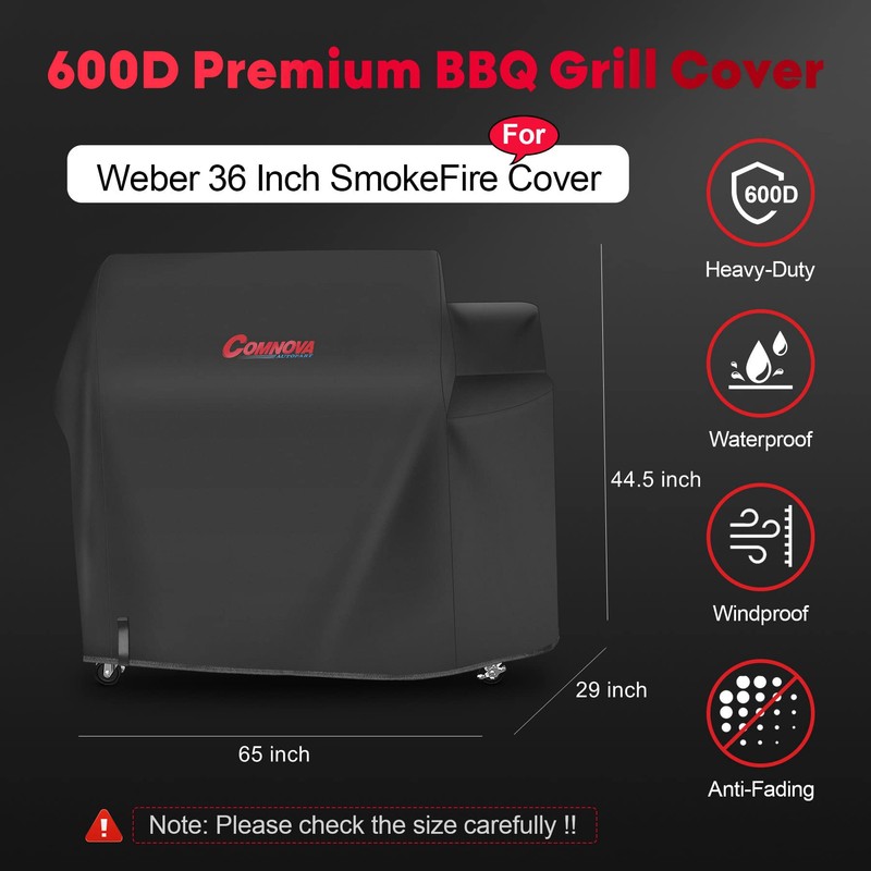 - | 65 Inch SmokeFire Grill Cover | - Measures: 65" width x 29" depth x 44.5" height, Comnova 7191 grill covers are perfectly compatible with Weber 36 Inch SmokeFire Wood Pellet Grill (EX6) outdoor bbq grill. (Not fit Weber Spirit series grills.)