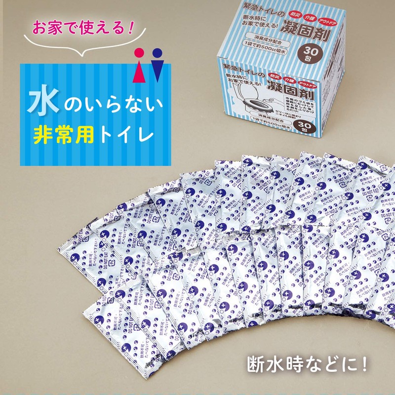 - An emergency toilet congealing agent that can be used for outdoor activities, disaster prevention, and nursing care