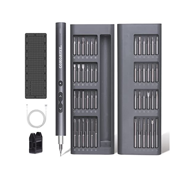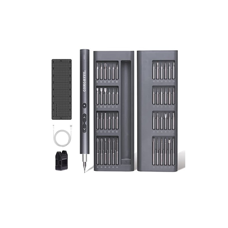COMOWARE Mini Electric Screwdriver-50 in 1 Precision Small Electric Screwdriver Set for PC Building with LED Light & 48 bits, Magnetizer, Magnetic Mat, Handy Repair Tool for Phone Watch Camera
