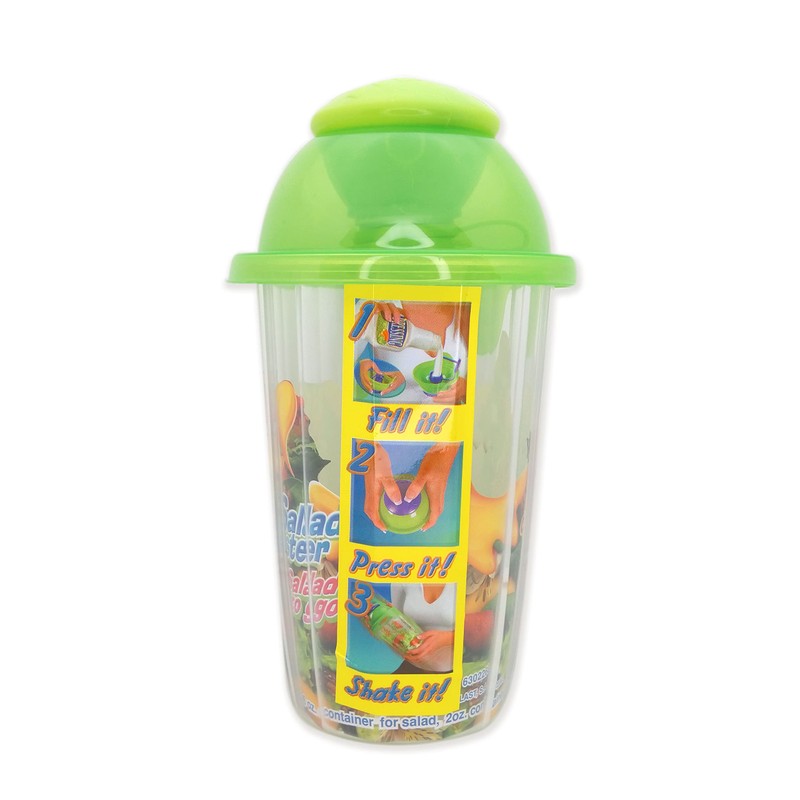 Compac Home Clear Salad Blaster Cup, 26oz, Reusable Salad Container, 2oz of Dressing in The Lid, Green