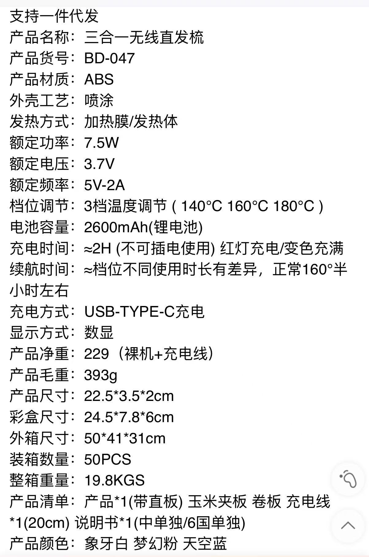 Compact 3-in-1 Cordless Mini Hair Styler for Students Stra White/Chinese Version 2ea