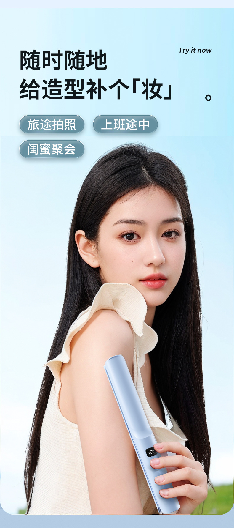 ✈️ Designed for the modern traveler, its mini size fits effortlessly into any bag. Get beautiful waves, bouncy curls, or sleek straight hair wherever your adventures take you.