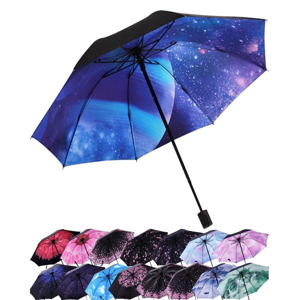 Compact Folding Umbrella Travel Umbrella - Umbrellas for Sunny & Rain,Windproof,Strong Compact Umbrella for Wind and Rain,Sun,Perfect Car,Backpack Umbrella,Golf Umbrella,for Men Women Teenage,#U308 (Manual-Galaxy)