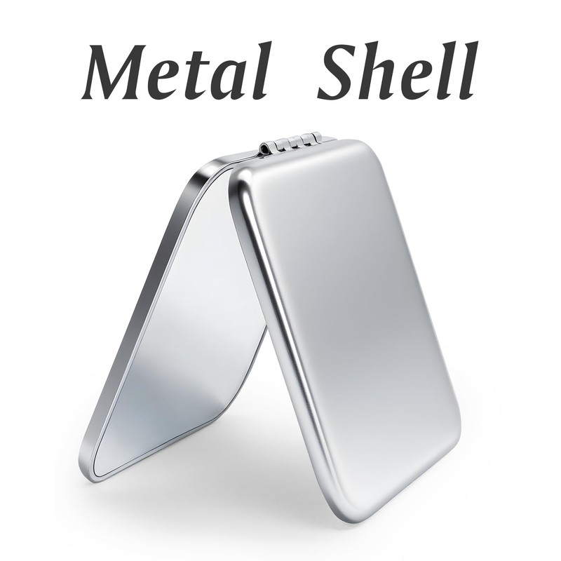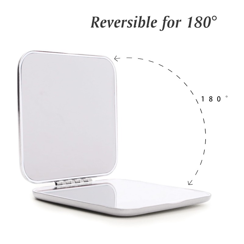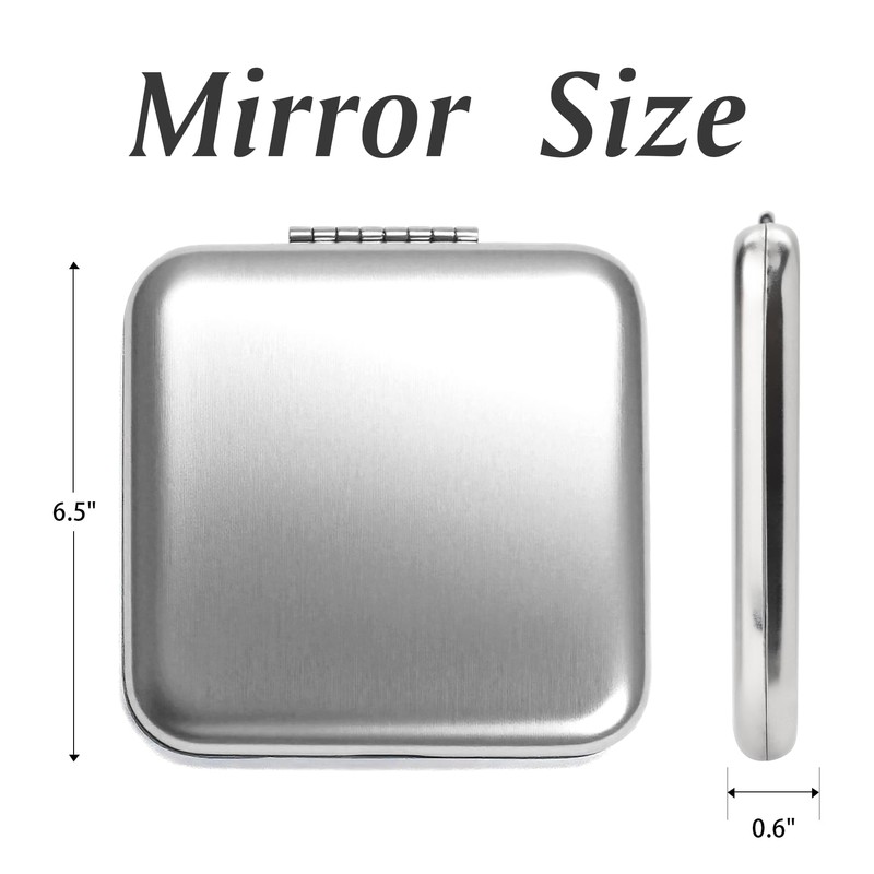 Compact Mirror for Purse, Metal Square Shell, Double-Sided 1X/2X Magnifying, Portable Travel Makeup Mirror, Mini Pocket Mirror, Sliver, 1 Pack