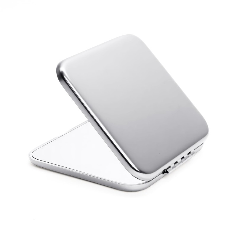 Compact Mirror for Purse, Metal Square Shell, Double-Sided 1X/2X Magnifying, Portable Travel Makeup Mirror, Mini Pocket Mirror, Sliver, 1 Pack