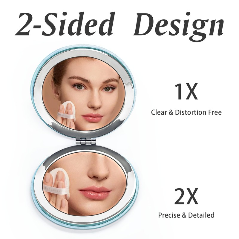 Compact Mirror for Purse, PU Leather Round Shell, Double-Sided 1X/2X Magnifying, Portable Travel Makeup Mirror, Small Pocket Mirror, 4 Pack, Blue