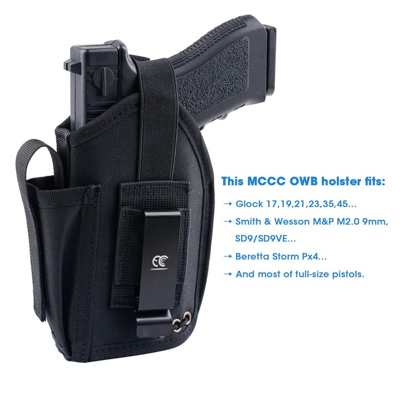 - [Fits Full-Size Pistols] As compact as possible in size, it is secure and comfortable for everyday carrying a larger 9mm pistol. *DON NOT RECOMMEND the compact and subcompact models for this outside waistband holster!*