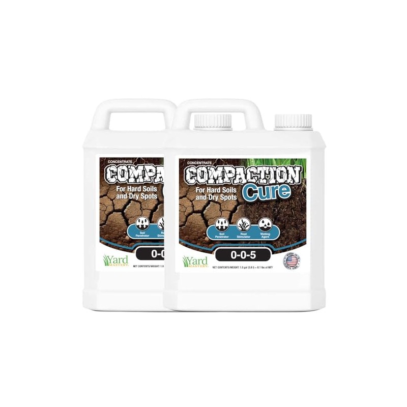 Compaction Cure Liquid Soil Aerator – 2 Gallon (256 oz) – Covers 42,666 sq. ft. – Loosens Hard Soil, Improves Drainage & Root Growth – Easy Liquid Lawn Aeration, No Core Aerator Needed – Yard Mastery