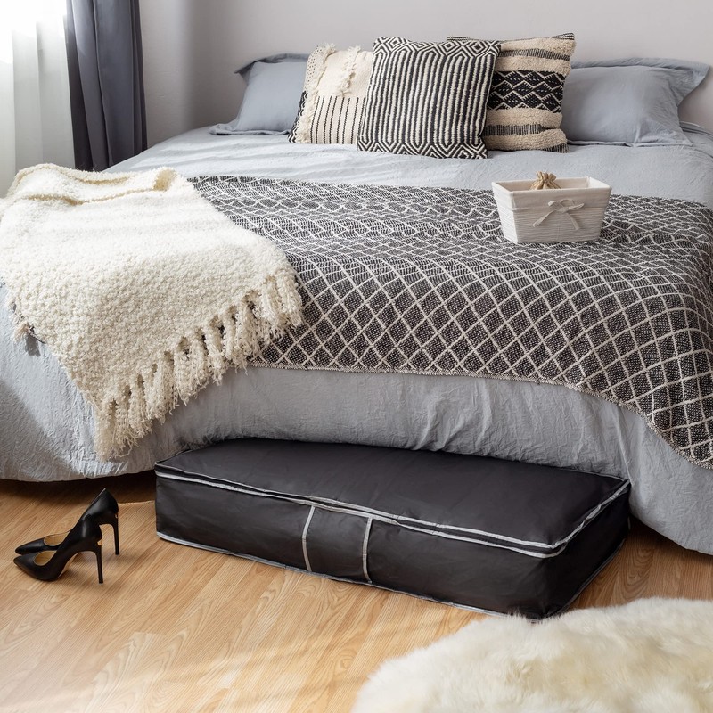 - Underbed storage with zip for dresses, ideal for storing jackets, sweaters, winter jackets, sheets and duvets
